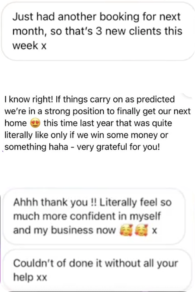 If you stop working, it slows down. And if you want to earn more… you end up working more. I’ve been there. And I want you to know, it’s not that you’re not capable or not working hard enough. Right now, you just don’t have the right structure that allows you to earn beyond your appointment diary. That’s where I come in!